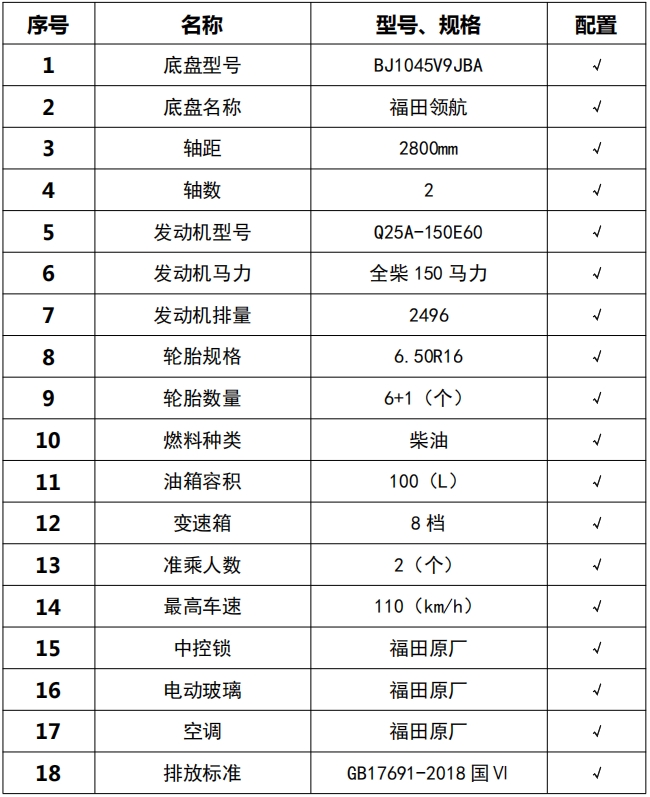 | 車輛主要配置 | |||