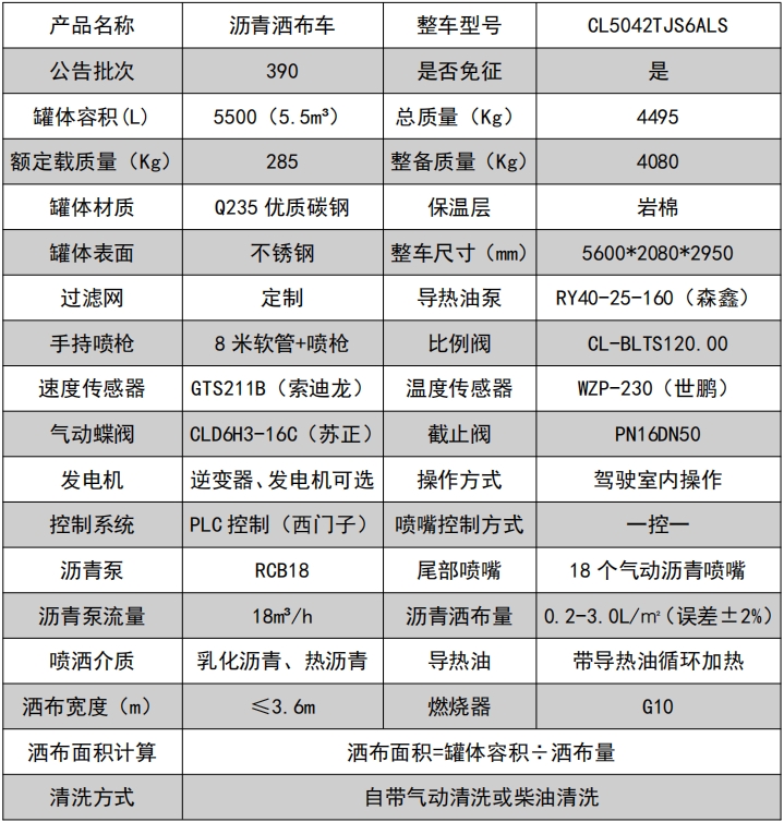 ??????湖北程力汽車:程力CL5042TJS6ALS福田領(lǐng)航 5.5 方藍(lán)牌智能瀝青灑布車產(chǎn)品型號(hào)及參數(shù)配置,程力CL5042TJS6ALS福田領(lǐng)航 5.5 方藍(lán)牌智能瀝青灑布車高清圖片,程力汽車系列程力CL5042TJS6ALS福田領(lǐng)航 5.5 方藍(lán)牌智能瀝青灑布車最新報(bào)價(jià)請(qǐng)撥打客服熱線。整車技術(shù)參數(shù) 產(chǎn)品商標(biāo) 程力牌 公告批次 390 產(chǎn)品名稱 水泥凈漿灑布車 產(chǎn)品型號(hào) CL5042TJS6ALS 總質(zhì)量(Kg) 4495 罐體容積(m3) 額定載質(zhì)量(Kg) 285,220 外形尺寸(mm) 5600 × 2080 × 2950 整備質(zhì)量(Kg) 4080 貨廂...