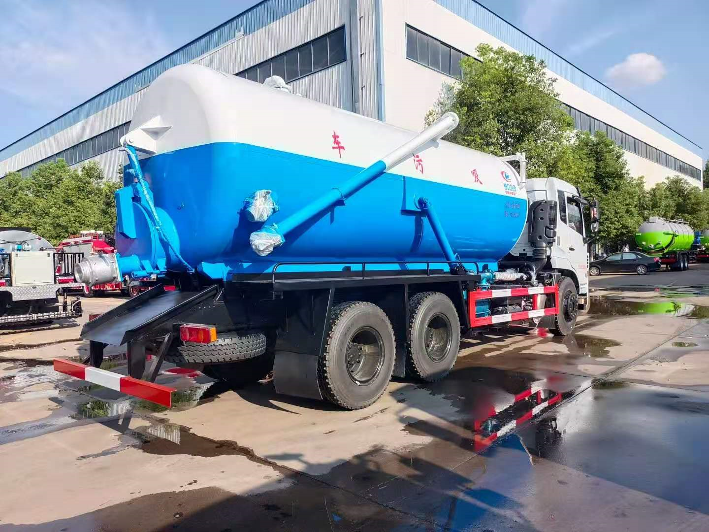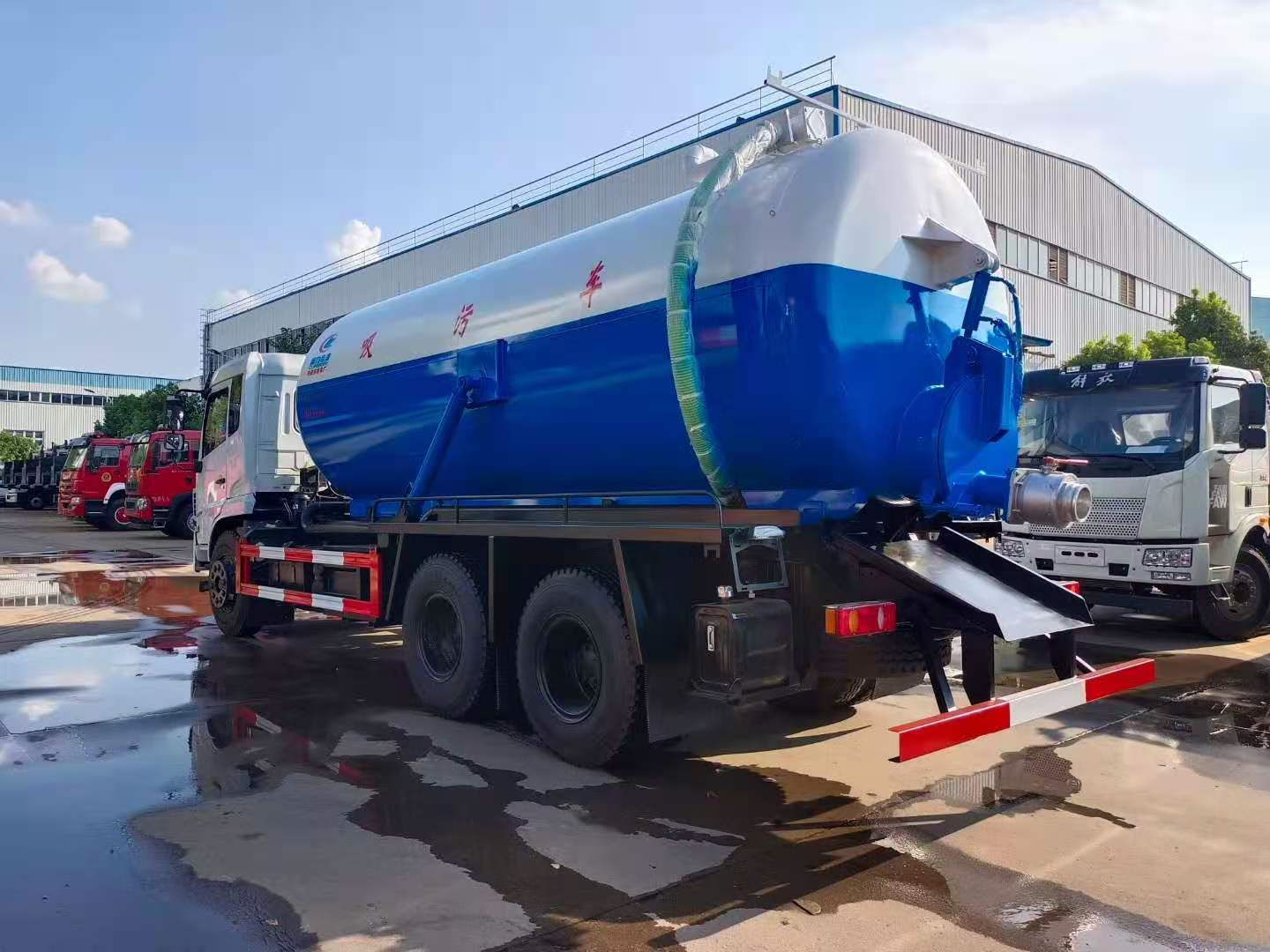 | 上裝配置 | 污罐:Q235武鋼6MM厚碳鋼板,標(biāo)配采用億豐2BE-204水循環(huán)泵,防溢閥,視糞管,配一根8米吸污管,罐體封頭一次壓鑄成型、罐體帶舉升,后蓋為液壓開(kāi)啟。罐內(nèi)污物可通過(guò)后蓋直接傾倒,具有真空度高、噸位大、效率高、用途更廣泛的特點(diǎn)。 | ||